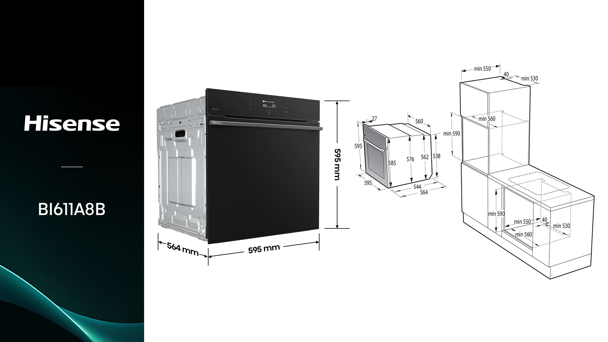 Hisense - BI611A8B – Horno Hidrolítico, Clase A+ , Capacidad 77L, Color Negro, ,